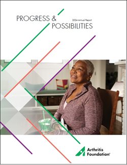 Reflecting back on 2024, we celebrate a year of progress, innovation and impact at the Arthritis Foundation, all to support the nearly 60 million people in the U.S. living with arthritis. This annual report highlights scientific breakthroughs that are shaping the future of rheumatology; advocacy wins that are helping advance patient care; and expanded access to trusted resources that benefit patients most of all. Discover how our partners, donors and volunteers helped us drive meaningful change. And how together, we’re building a stronger, more connected arthritis community. Download a PDF of the 2024 Annual Report