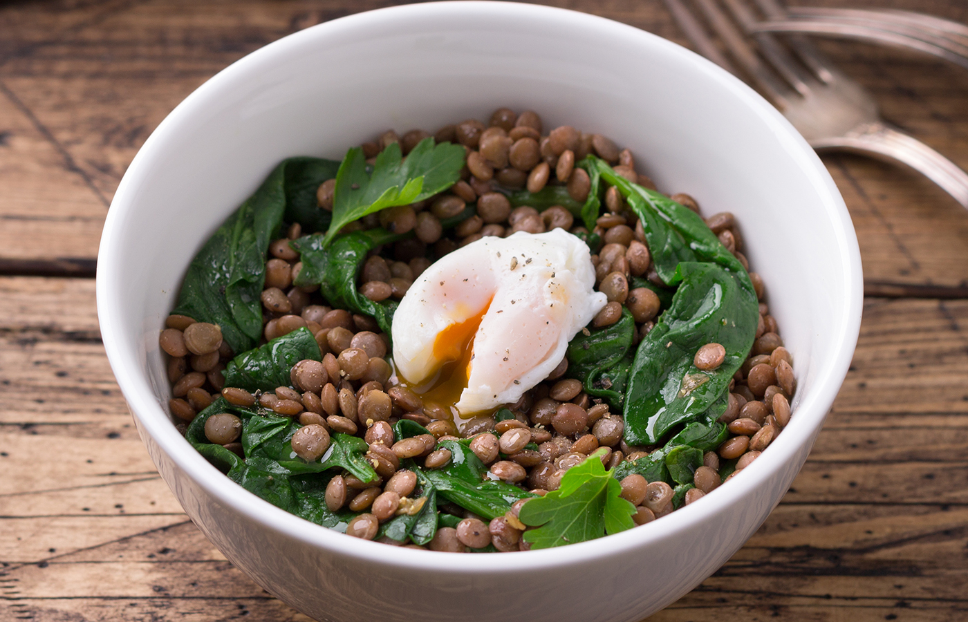 With just six ingredients and 15 minutes, you can drum up a breakfast that has enough protein to get you through the day but is also fancy enough for a family brunch — and very nutritious. Start with good olive oil and let your kitchen guide you. Try using leftover taco meat or Italian-style chicken sausage in place of the chorizo, frozen spinach instead of fresh, or white beans or chickpeas in place of lentils. If you prefer, serve with an extra drizzle of high-quality olive oil and a slice of toasted sourdough.